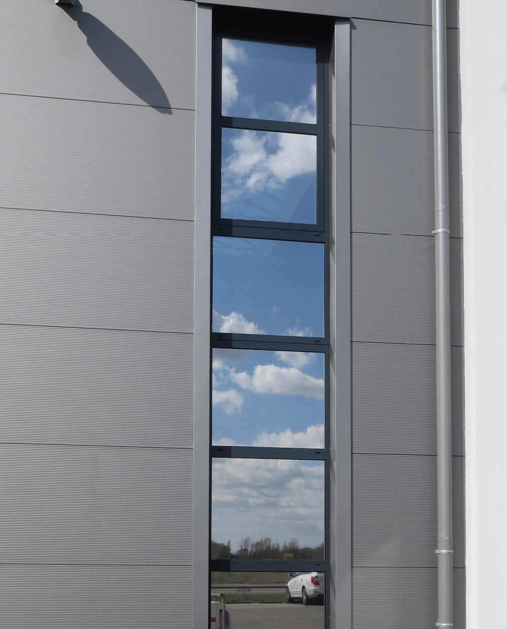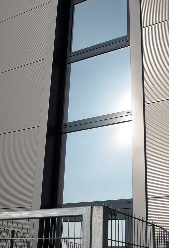 Sonnenschutzfolien für Fensterbänder einer Industriehalle