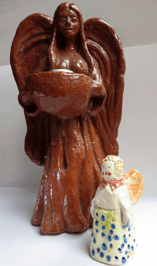 Plastiken oder Skulpturen - ob als Standplastik mit Kerzenhalter oder als Engel -, diese Figuren bewirken immer eine belebende Raumwirkung. Der Betrachter wird zum Umschreiten angeregt,