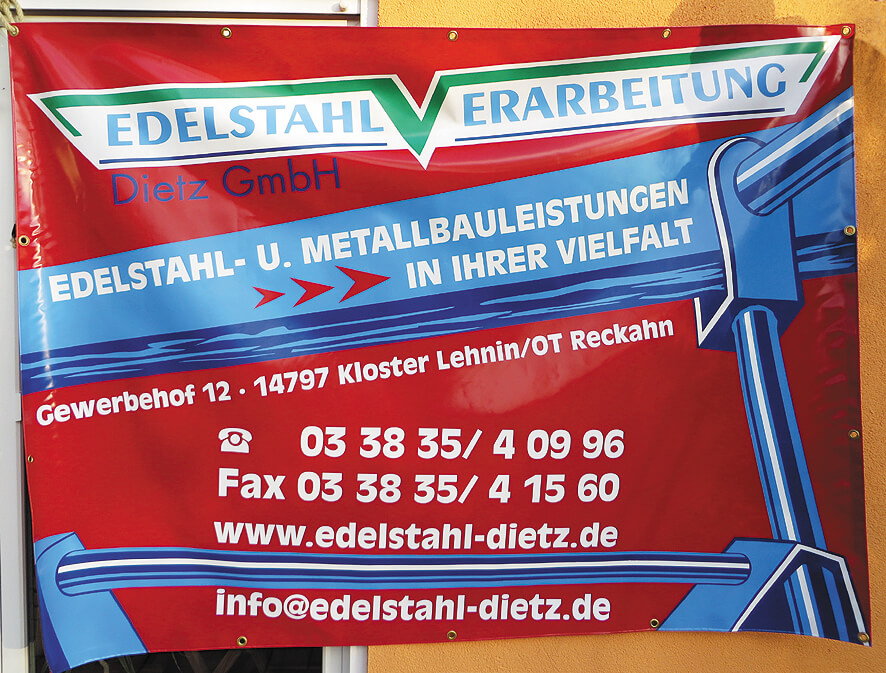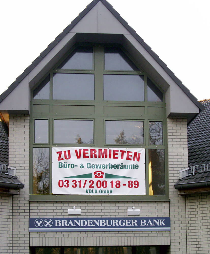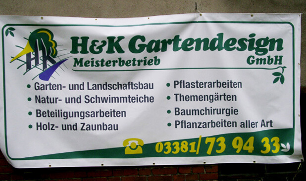 Hierbei wird PVC-Rollfarbe über Schablonen aufgewalzt, welche große Langzeiteigenschaften garantieren oder feste Hochleistungs-Bannerfolie verklebt.